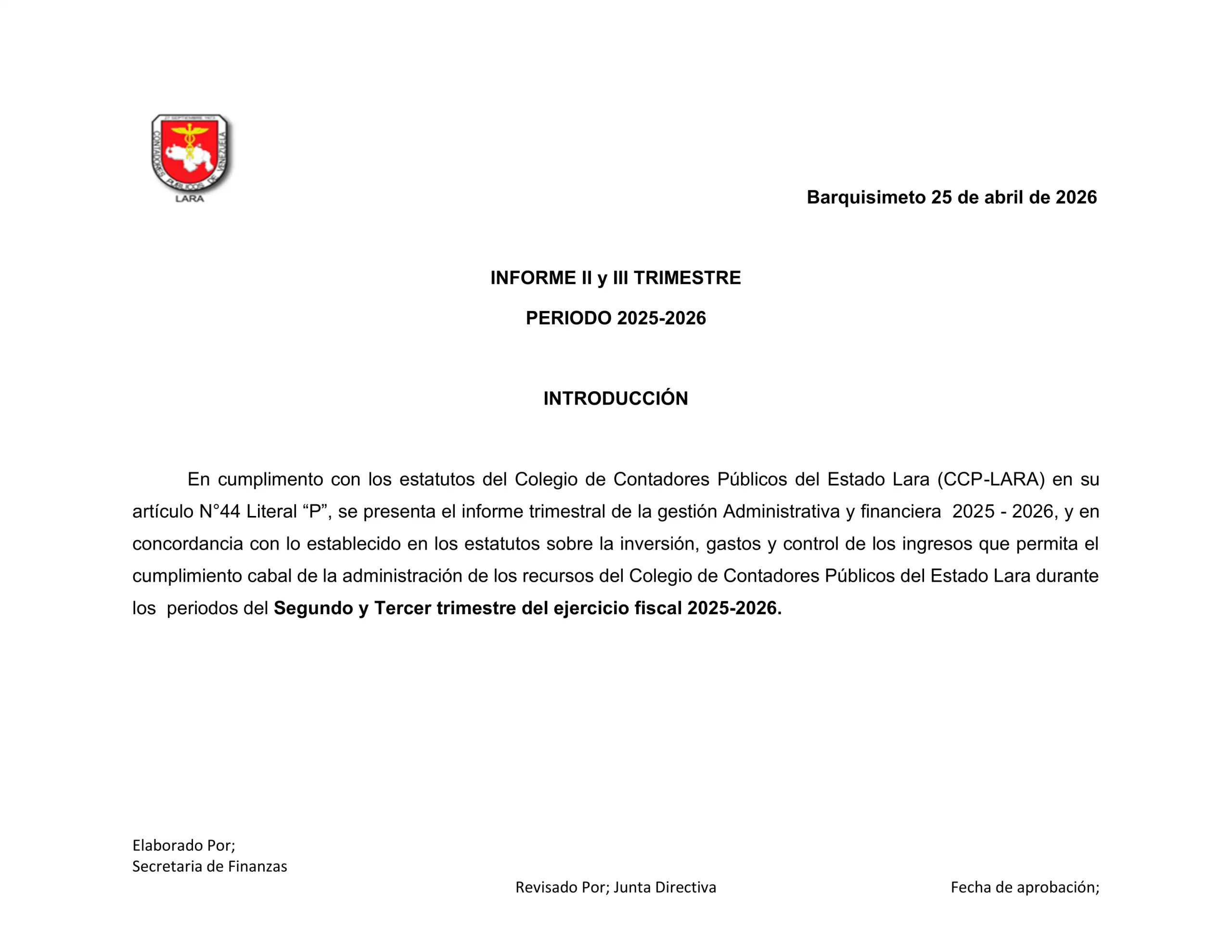 Informe II y III trimestre Periodo 2025-2026 CCPLARA