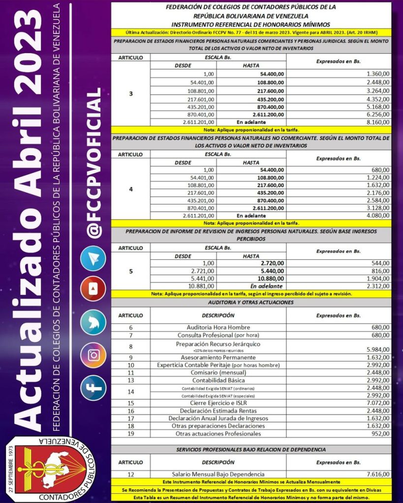 *ATENCIÓN: Buenos días, planifica el mes con la Actualización del Instrumento Referencial de Honorarios Mínimos (IRHM). Vigente para ABRIL 2023.