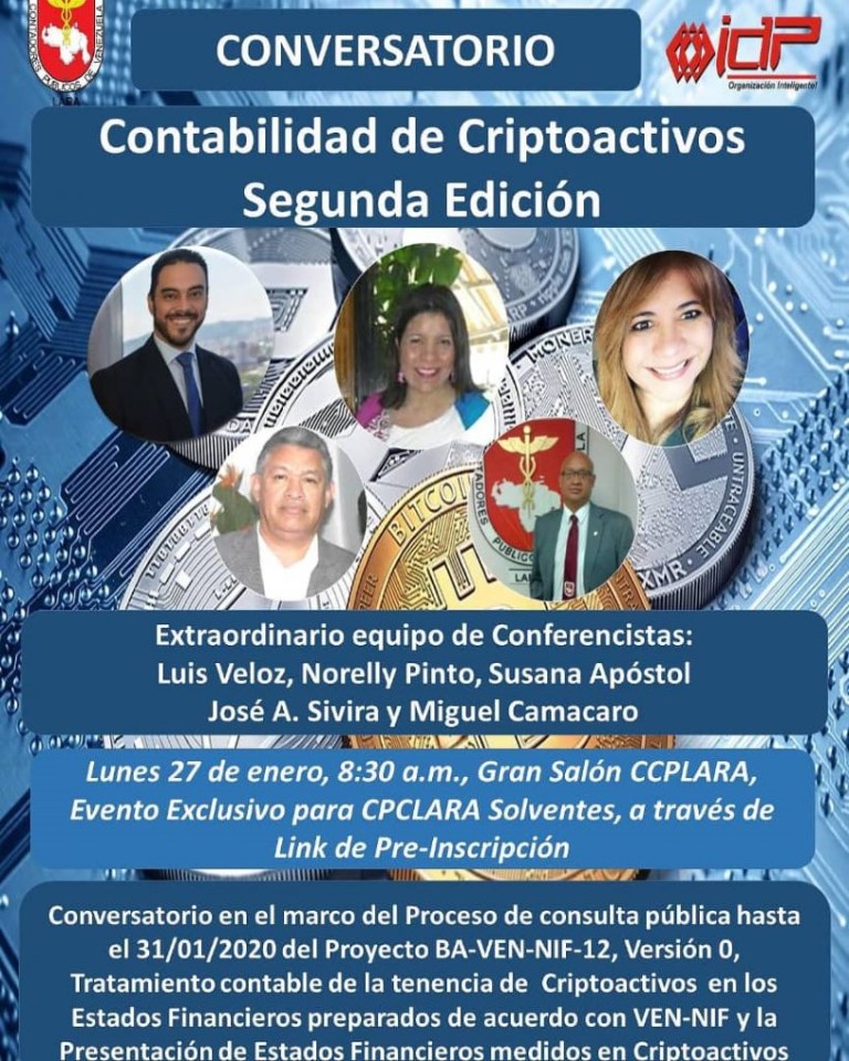 Saludos cordiales, adjunto link de Pre-inscripción, SEGUNDA EDICIÓN Conversatorio Contabilidad de Criptoactivos, en el marco del proceso de consulta pública del BA-VEN-NIF 12 Versión 0, a celebrarse el lunes 27/01/2020, a las 8:30 a.m. en Gran Salón CCPLARA.
